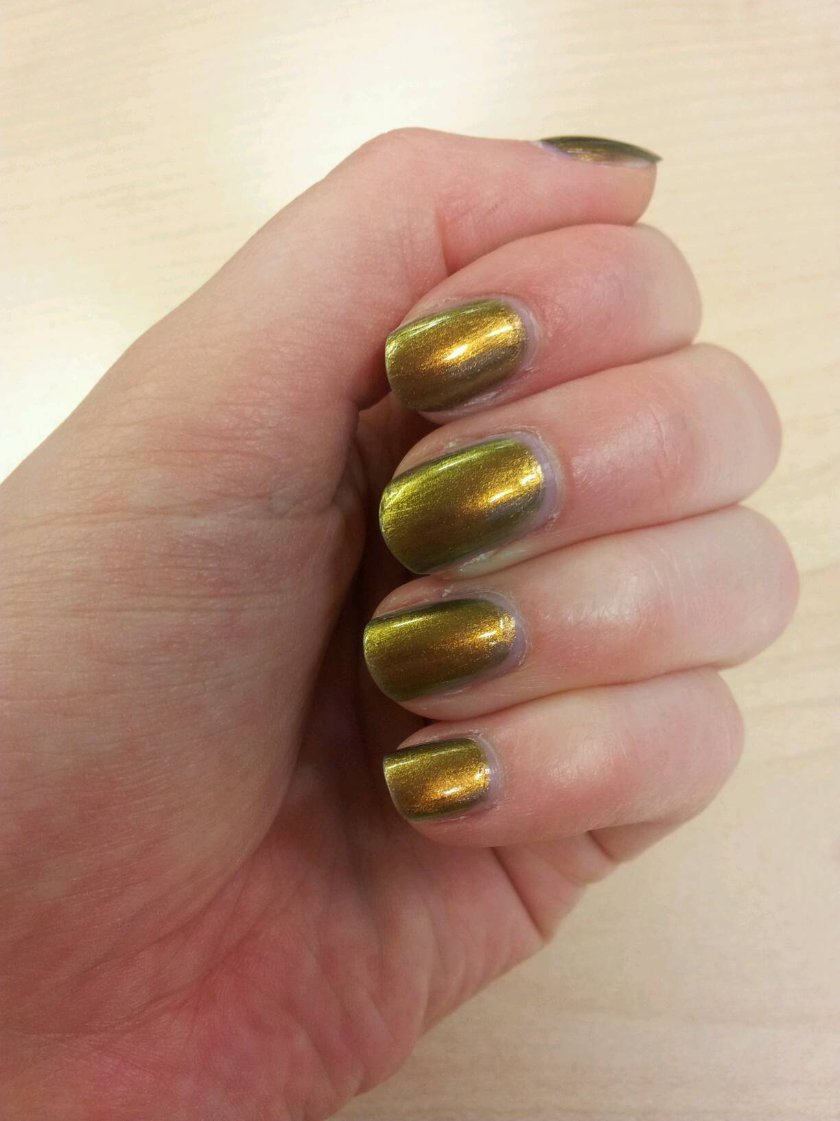 Diesen besonderen Lack ist seit der Frühjahrumstellung im Februar bei Catrice im Standartsortiment zu finden. Genius in a bottle ist ein metallischer Goldton mit grünem und leicht gelblichen Schimmer. Er wird als günstiger Dupelack zum Chanel Peridot gehandelt. Auch ist er günstiger als der Artdeco Lack Nr. 226 aus der Magic Shine LE über die ich ein paar Posts weiter unten gebloggt habe.